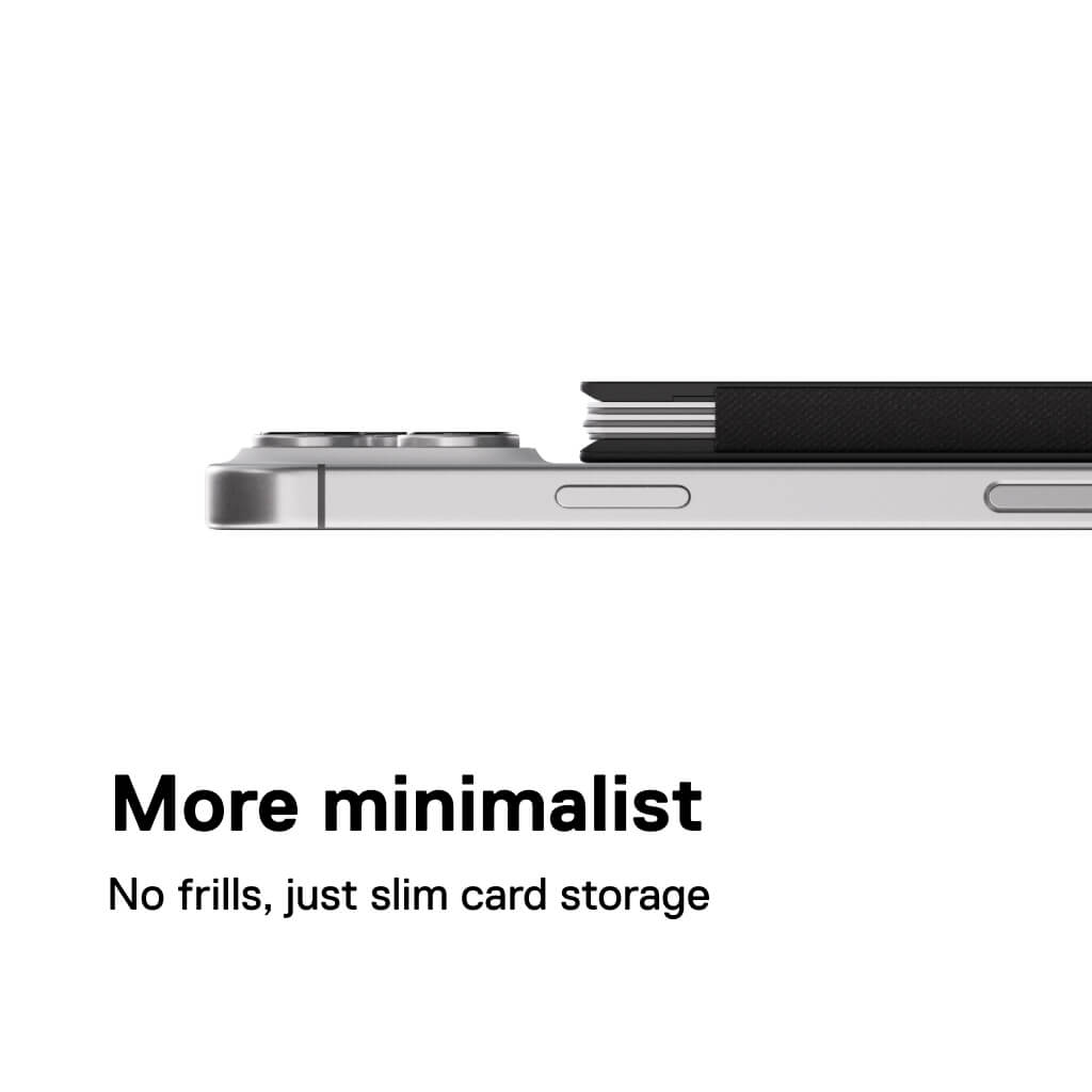 The Cardholder Nano is our most minimal cardholder. Use it on its own, as a MagSafe cardholder on your iPhone, or as an add-on for the Cardholder Pro for MagSafe to expand card capacity. The Cardholder Nano for MagSafe offers slim card storage for up to 10 cards.
