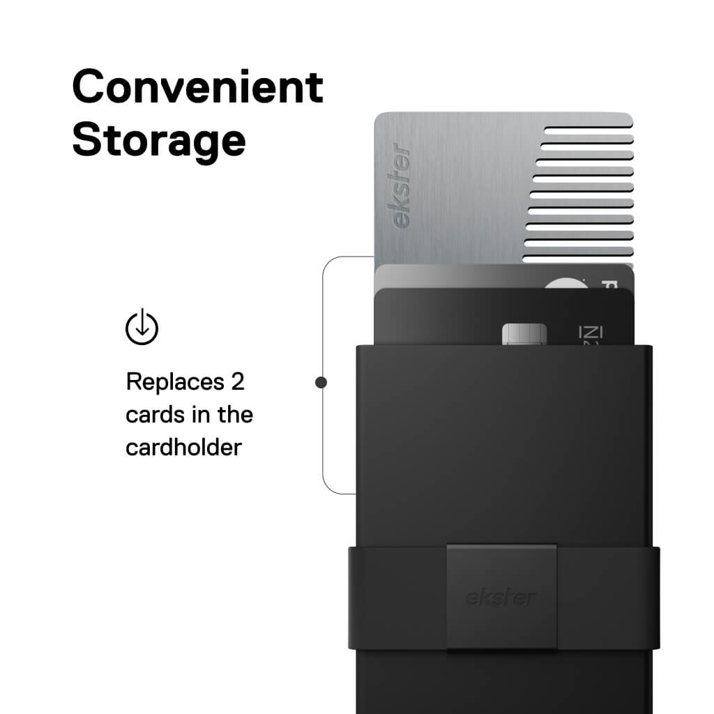 A stainless steel 2-in-1 bottle opener and comb for your wallet. Use this card-sized tool on the go and store it in your Ekster wallet or cardholder.