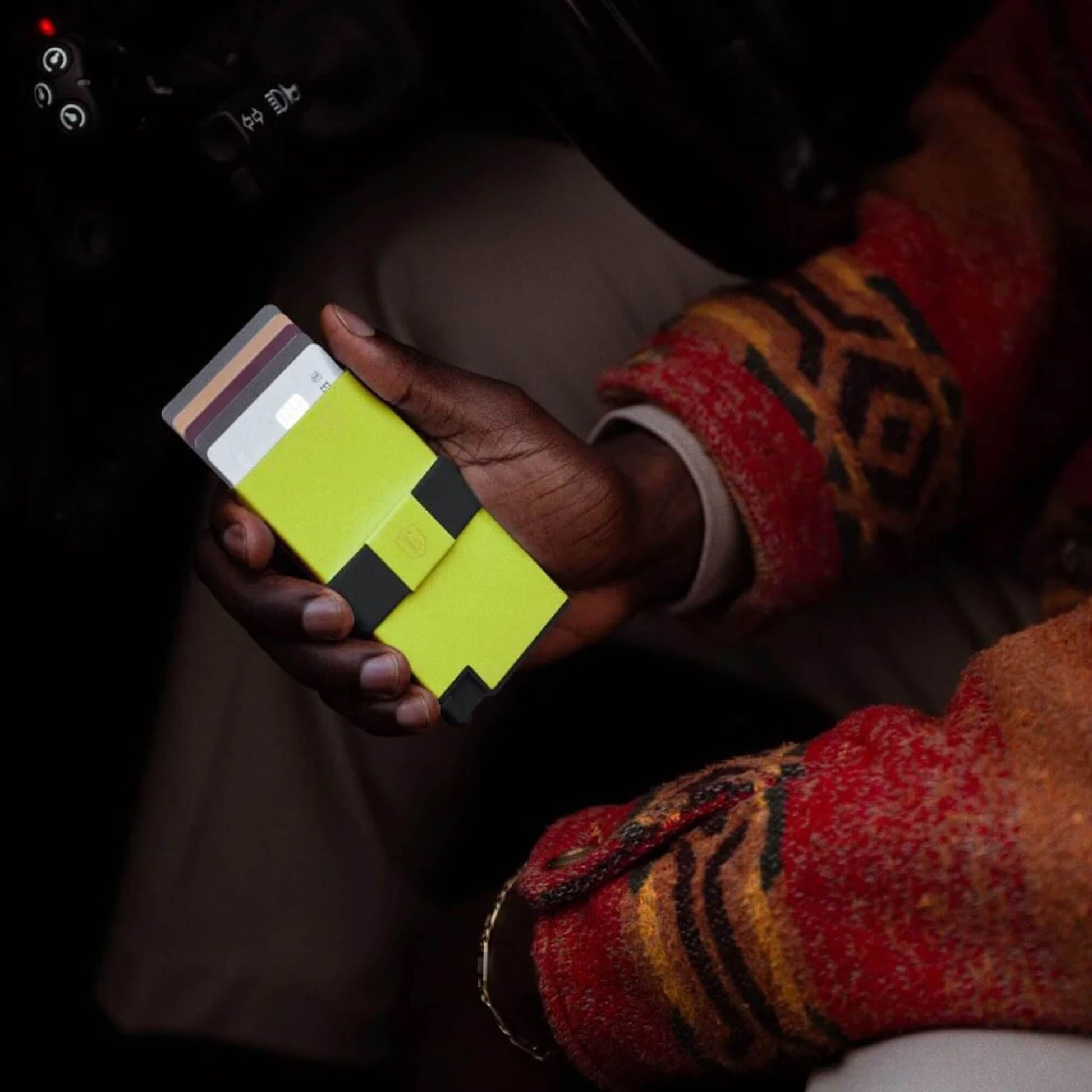 I needed a rigid wallet to prevent my cards from being bent and damaged. The sliding card mechanism and silicon strap make it an excellent overall product.