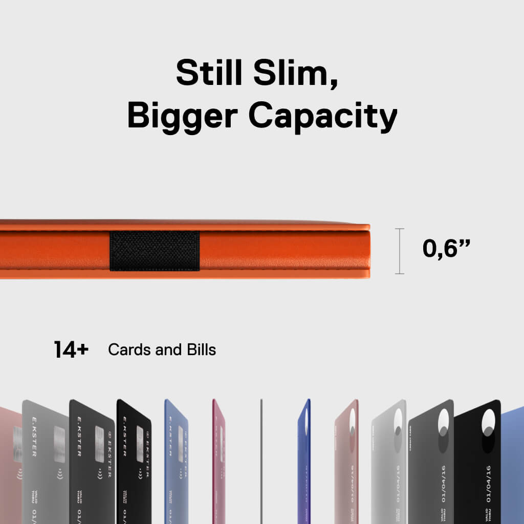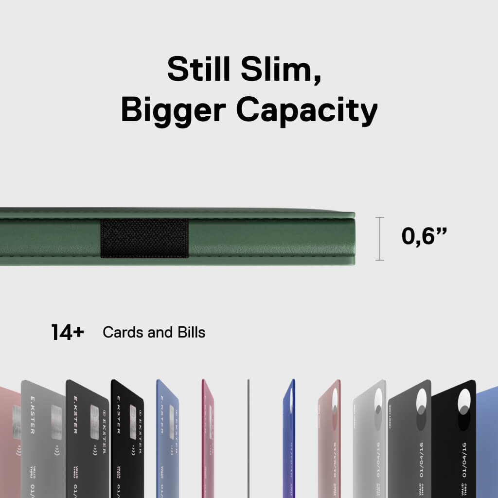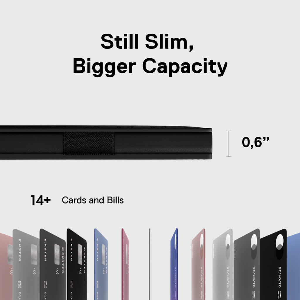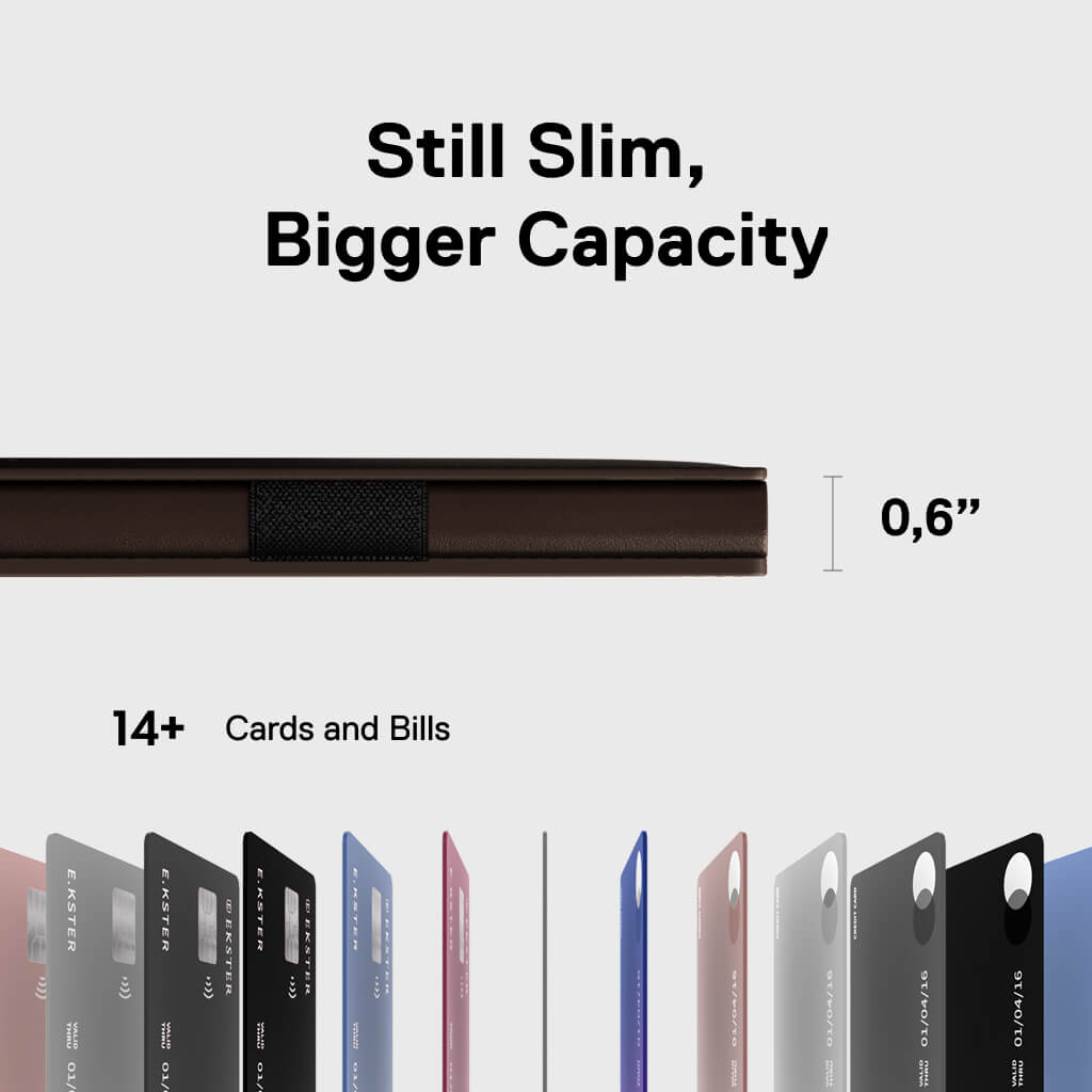 - Now holds 1–14 cards and bills