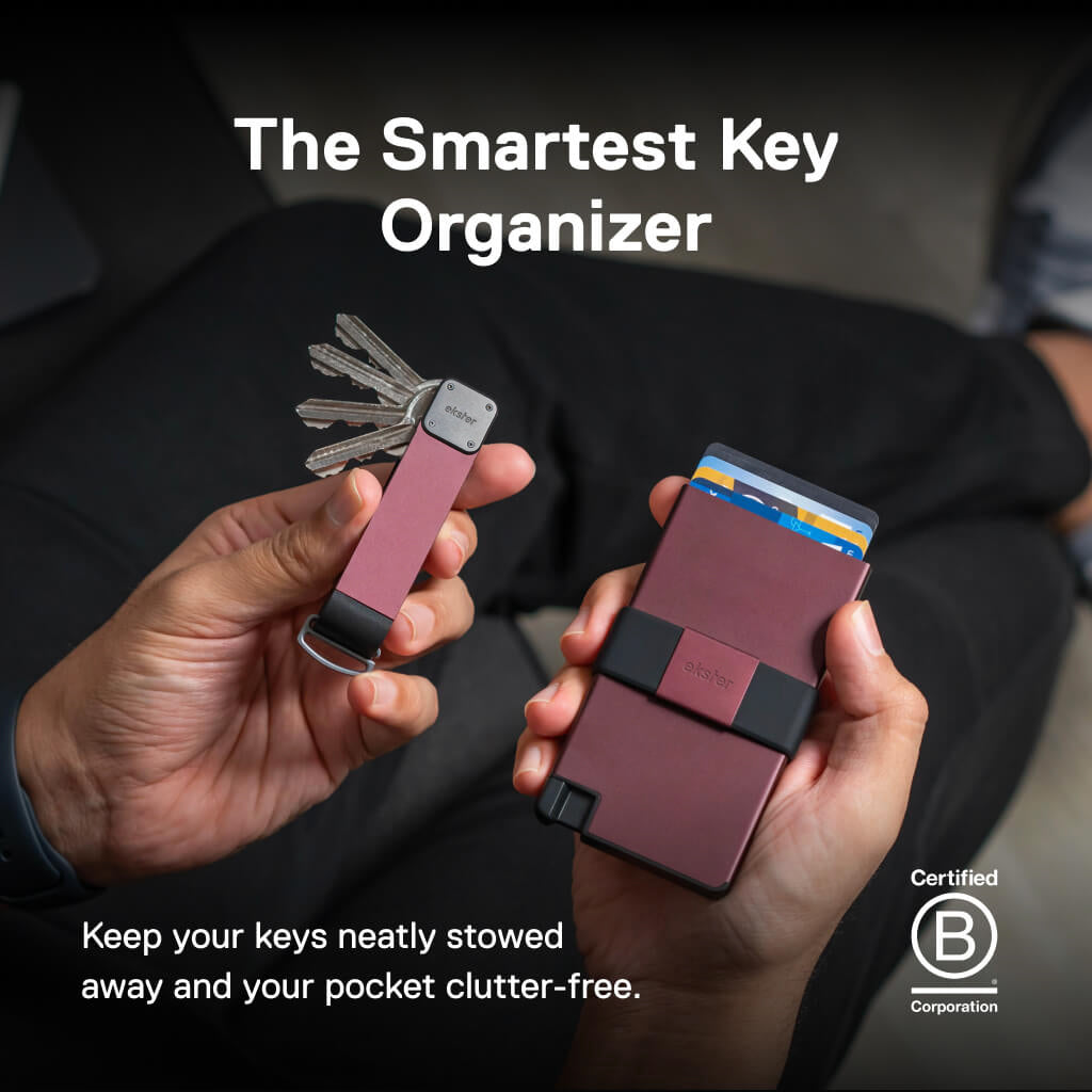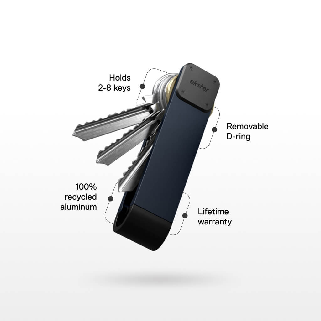An easy-access metal key holder that organizes 2-8 keys in a silent stack. Made from 100% recycled space-grade aluminum and backed by our lifetime warranty, the key case can be modified with a D ring for larger keys or car keys. Shop matching bundles to save 35% and add a Key Tracker to make it unlosable.